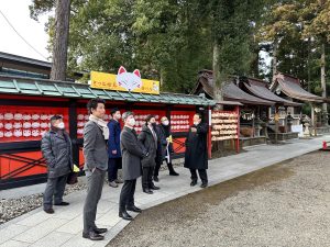 当会代表理事(会長)武本俊が元々武本家の行事として約80年前から正式参拝を続けており、武本自身も今年で59回(59年)の参拝となりました。この25年間は毎年参加希望をされた少数の勾玉会有志の方々を引率し、新春参拝を続けております。