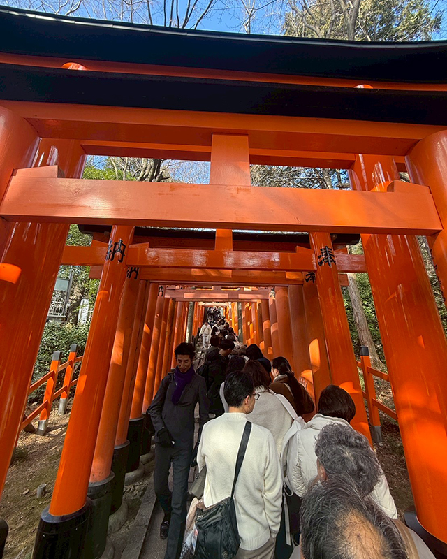 そして、伏見稲荷大社を代表する景色といえば、やはり千本鳥居です。真っ赤な鳥居が幾重にも連なり、まるで異世界に迷い込んだかのような幻想的な空間が広がっています。